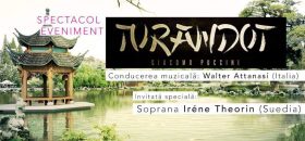 Spectacolul cu opera „Turandot” de Giacomo Puccini – a cărui premieră a avut loc la Craiova în urmă cu mai bine de 15 ani, în regia artistică a lui Emil Strugaru şi scenografia lui Sorin Novac – prilejuieşte întâlnirea publicului cu două astfel de nume sonore ale scenei. Reprezentaţia de sâmbătă seara o are cap de afiş pe celebra soprană suedeză Iréne Theorin, rolul Principelui Calaf urmând a fi interpretat de tenorul italian Simone Frediani.