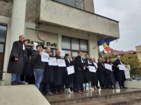 Astăzi, circa 30 de avocați au protestat, în fața Baroului Dolj, nemulțumiți de blocajul din justiție, situație generată de protestele inițiate de magistrați. Avocații, printre care și Dragoș Nicu și Bogdan Mihăiloiu, decanul, respectiv prodecanul Baroului Dolj, atrag atenția că suspendarea sau limitarea activității instanțelor și a parchetelor afectează în mod direct drepturile justițiabililor, printre care accesul la justiție, soluționarea cauzelor într-un termen rezonabil și respectarea garanțiilor procesului echitabil. “Avocații vor să muncească“, “Justiție întârziată=Justiție negată“, “Justiție tardivă=justiție ineficientă” sunt câteva dintre mesajele transmise de avocații doljeni.