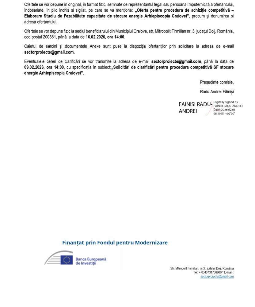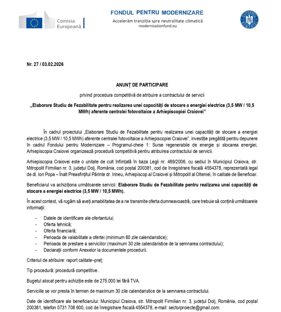 Comunicat de presă Arhiepiscopia Craiovei