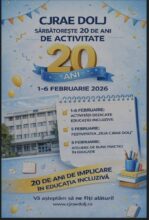 Centrul Județean de Resurse și Asistență Educațională (CJRAE) Dolj marchează împlinirea a 20 de ani de activitate, printr-o serie de activități dedicate consilierii educaționale și psihopedagogice, terapiei logopedice, sprijinului educațional și promovării incluziunii școlare, adresate elevilor, cadrelor didactice și familiilor acestora. În ziua de 5 februarie, de la ora 13:00, la Hotel RAMADA, sala “Constantin Brâncuși”, va avea loc o prezentare de gală a întregii activități desfășurate în tot acest timp.