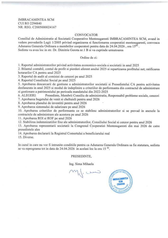 Convocator A.G.O. IMBRACAMINTEA SCM