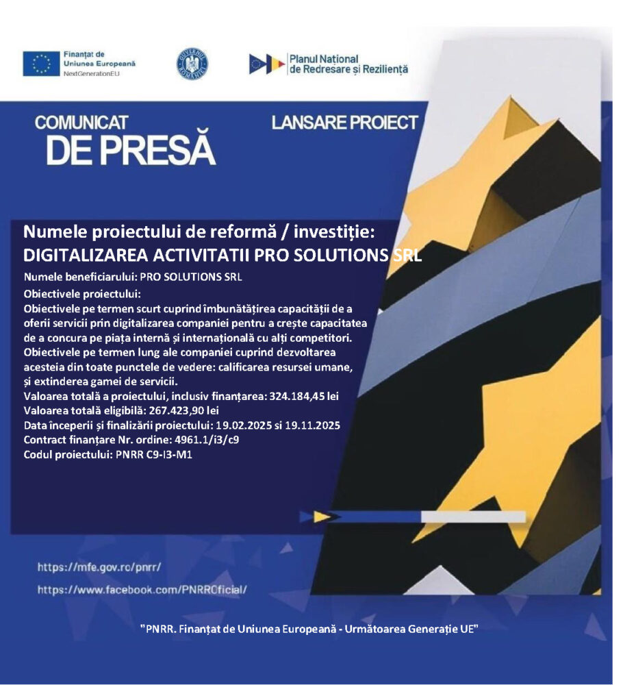 Comunicat de presă PRO SOLUTIONS SRL
