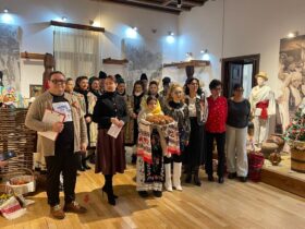 Muzeul Olteniei Craiova, în colaborare cu Corul Seminarului Teologic Ortodox ”Sfântul Grigorie Teologul”, Colegiul Național „Frații Buzești” și Centrul Județean de Cultură și Artă (CJCA) Dolj, Secția Școala Populară de Arte și Meserii „Cornetti”, au recreat, astăzi, la Casa Băniei, atmosfera satului tradițional din timpul sărbătorilor de iarnă, prin prezentarea unor filme documentare, a costumului de sărbătoare purtat, iarna, în Oltenia, a măștilor tradiționale pe care românii le purtau la trecerea dintre ani, a mesei tradiționale din Ajunul Crăciunului.