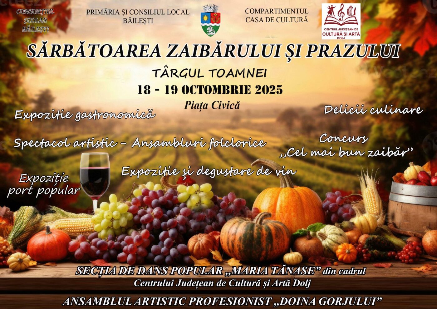 V-am pregătit două zile pline de cântec, dans, bunătăţi olteneşti, târguri cu produse locale şi, desigur, vedetele toamnei — zaibărul de Băileşti şi prazul oltenesc!