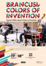 Primul eveniment va avea loc pe 17 ianuarie, de la ora 18:00, la Centrul „Constantin Brâncuși”. Violonistul francez Gilles Apap și cvartetul său, ” Colors of Inventions”, vor veni la Craiova pentru a crea o punte simbolică între România și Franța, țara care i-a fost casă pentru atâta vreme artistului român. Astfel, de la muzicienii Gilles Apap (vioară), Myriam Lafargue (acordeon), Philippe Noharet (contrabas) și Ludovit Kovac (țambal) vom primi o mostră binemeritată a spiritului vibrant al atelierului lui Brâncuși , din “Impasse Ronsin”. Greutatea acestei alegeri este cu atât mai mare cu cât Centrul „Constantin Brâncuși” găzduiește chiar bârnele pe care Brâncuși le-a avut în atelierul său din Paris. Repertoriul ales este un dialog cultural fascinant, ce reunește geniul unor compozitori – dintre care amintim Bach, Mozart, Enescu ori Satie – cu libertatea jazzului și autenticitatea muzicii tradiționale oltenești.