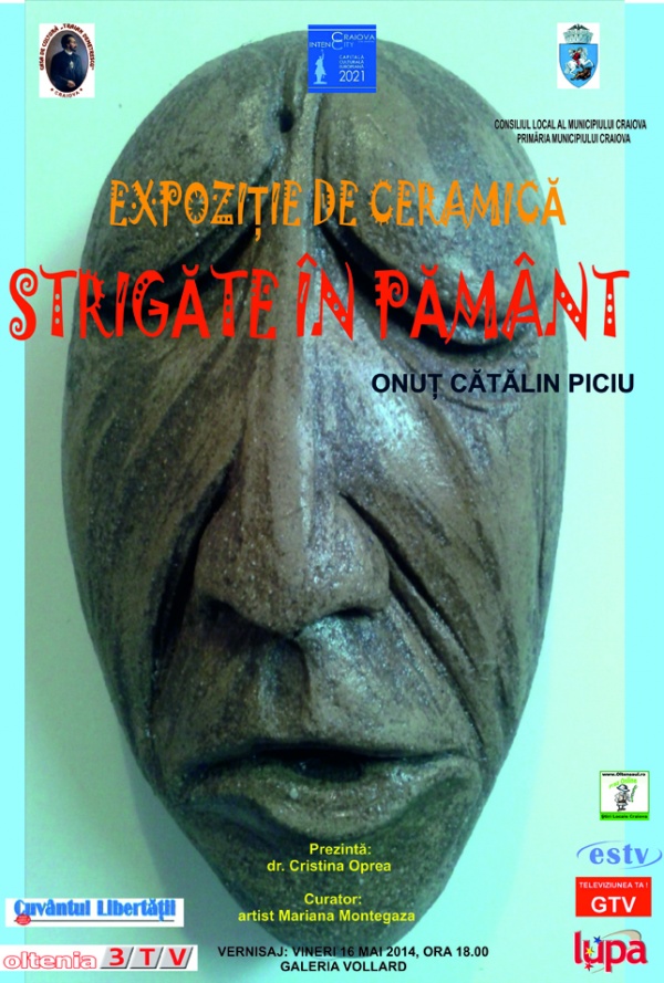 Casa de Cultură „Traian Demetrescu” organizează astăzi, ora 18.00, la Galeria „Vollard”, vernisajul expoziţiei de ceramică „Strigăte în pământ” a artistului Onuţ Cătălin Piciu. Acesta a absolvit în anul 2001 Şcoala de Artă „Cornetti” – secţia Sculptură, este membru al Cenaclului „Seniori Art” din Craiova şi a participat cu lucrări la câteva expoziţii colective și de grup. Așa au fost cele deschise la Vidin, la Caracal, Calafat și Craiova (Galeria „Alliance Francaise”, foaierul Filarmonicii „Oltenia”, Liceul de Arte şi Meserii „Constantin Brâncuși” ș.a.).