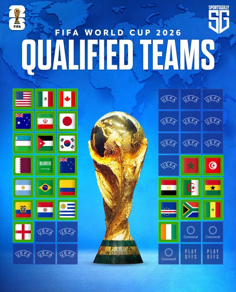 Anglia, cu germanul Thomas Tuchel pe banca tehnică, este prima echipă europeană calificată. Din cele 48 de echipe care vor fi prezente la ediţia din Mexic, Canada şi SUA, 28 au obţinut deja calidicarea, acestea fiind următoarele: Algeria, Capul Verde, Egipt, Ghana, Coasta de Fildeş, Maroc, Senegal, Africa de Sud, Tunisia (Africa), Gabon, RD Congo, Camerun şi Nigeria, cele mai bune 4 echipe venite pe locul 2, vor merge într-un turneu de play-off. Din Europa s-a calificat până acum, aşa cum menţionam, Anglia. Din America de Sud, Argentina, Brazilia, Columbia, Ecuador, Paraguay, Uruguay, din Oceania, Noua Zeelandă, iar pentru un baraj intercontinental s-a calificat Noua Caledonie. Ţările gazdă sunt calificate din oficiu. Din Asia locurile au fost ocupate de Iran, Japonia, Iordania, Qatar, Arabia Saudită, Coreea de Sud, Uzbekistan, dar şi Australia. La barajele intercontinentale vor merge Irakul, Emiratele Arabe Unite. În Europa, Portugalia, Croaţia, Spania, Olanda, Elveţia, Austria şi Norvegia au un picior în America. Italia, dar mai ales Suedia, suferă fiind ameninţate de play-off-ul fatal.