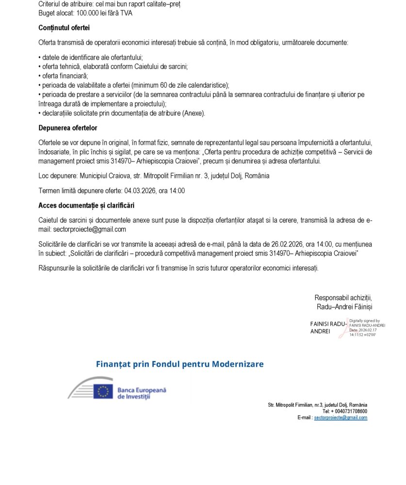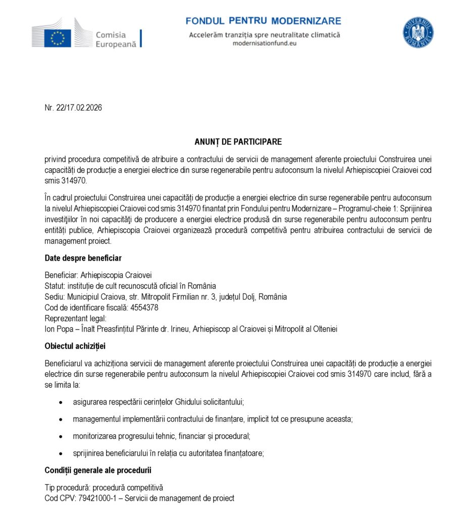Comunicat de presă Arhiepiscopia Craiovei