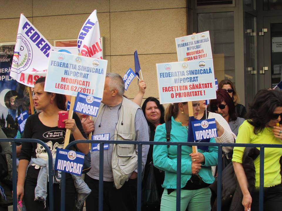 Federaţia Sindicală Hipocrat a declanşat seria de proteste pe 10 octombrie, cu o grevă japoneză, cu banderolă, care a durat până pe 14 octombrie. Potrivit comunicatului remis MEDIAFAX, între 17-21 octombrie va avea loc pichetarea şi întreruperea temporală a activităţii ” în funcţie de rezultatul consultării membrilor”, iar pe 31 octombrie va fi declanşată greva generală.