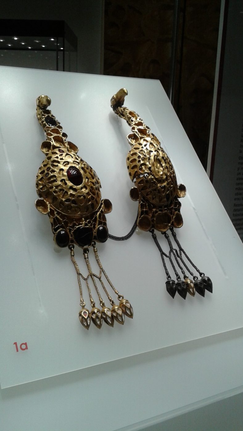 Fără îndoială capul de afiş este deţinut de tezaurul de la Pietroasa (numit popular Cloşca cu puii de aur), proprietate a casei regale gotice (cel mai probabil, ostrogoţi), care are în componenţă piese unicat, de o incontestabilă valoare. Povestea tezaurului este una fascinantă începând de la descoperirea sa, continuând cu aventurile prin care a trecut în a doua jumătate a secolului XIX, apoi cu „exilul” în Rusia (mai apoi, Uniunea Sovietică) şi terminând cu reîntoarcerea la Muzeul Naţional de Istorie a României din Bucureşti. Dar nu aici este locul să istorisim „saga” sa, acest lucru fiind deja făcut în paginile volumului „Aurul şi argintul antic al României” sau în alte lucrări de specialitate.
