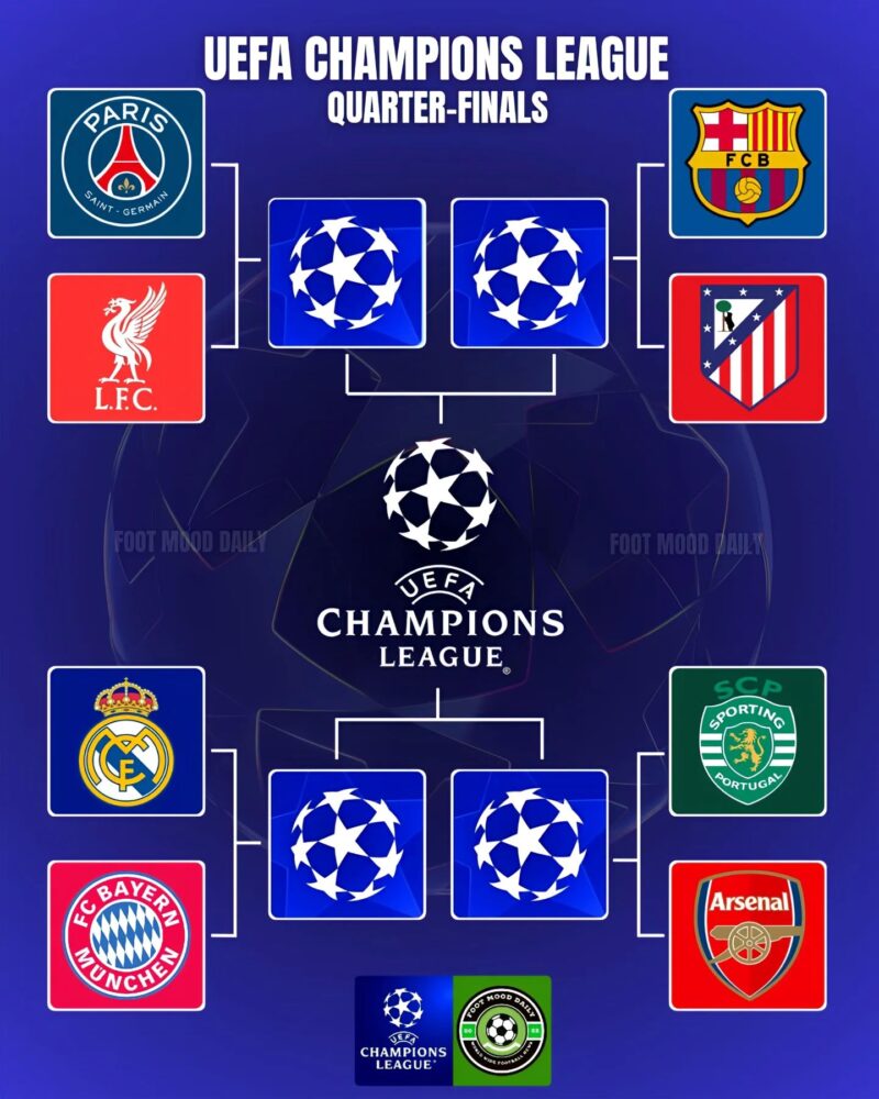 Programul complet al sferturilor de finală ale Ligii Campionilor (7 şi 15 aprilie a.c.) arată astfel: Sporting Lisabona – Arsenal, Real Madrid – Bayern Munchen, FC Barcelona – Atletico Madrid, PSG – Liverpool. Sunt partide, care dincolo de miza lor firească, anunţă adevărate spectacole fotbalistice. PSG şi Liverpool s-au întâlnit şi în ediţia trecută în aceeaşi fază a competiţiei, parizienii accedând în faza imediată după executarea loviturilor de penalty, iar FC Barcelona şi Atletico Madrid, chiar recent, au avut o dublă confruntare în „Cupa Regelui”.