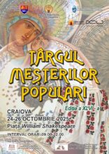 Muzeul Olteniei Craiova – Secția de Etnografie, cu sprijinul Consiliului Județean Dolj și în parteneriat cu Primăria și Consiliul Local Municipal Craiova, Centrul Județean de Cultură și Artă Dolj – Ansamblul de Dans Popular „Maria Tănase” și Teatrul pentru Copii și Tineret „Colibri” Craiova – Secția Folclor „Maria Tănase”, organizează, în perioada 24-26 octombrie 2025, în Piața „William Shakespeare” din Craiova, a XLVI-a ediție a Târgului Meșterilor Populari, reper al tradițiilor și spiritualității populare românești, ce aduce laolaltă, într-un spațiu carismatic din Cetatea Băniei, peste 50 de meșteri populari din toată țara.