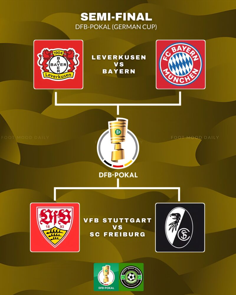 Cu titlul de campioană deja adjudecat, prezentă de asemenea, în semifinalele Ligii Campionilor, unde o aşteaptă PSG (28 aprilie prima manşă), Bayern Munchen încearcă astă-seară (20.45), pe BayArena să învingă pe Bayer Leverkusen. La 14 martie, în etapa a 26-a de campionat, cele două echipe au terminat la egalitate (1-1). Statisticile spun că după 1979 s-au întâlnit de 106 ori. Câştigătoare de 20 de ori a Cupei Germaniei, echipa lui Vincent Kompany n-a mai avut acces la acest trofeu, din ediţia 2019-2020. În cealaltă semifinală se întâlnesc VfB Stuttgart şi Freiburg.
