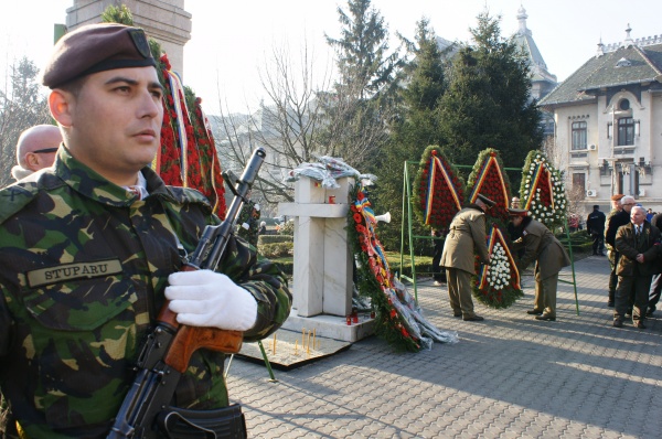 Purtând panglica tricoloră pe un braț, în amintirea acelor zile, revoluționarii au depus, după momentul alocuțiunilor, coroane de flori la troița martirilor de lângă statuia lui Alexandru Ioan Cuza. Gestul lor a fost urmat de autoritățile locale și județene, de cadrele militare și reprezentanții partidelor politice care au participat la manifestările ce s-au desfășurat în fața Primăriei Craiova. Ceremonialul s-a încheiat cu defilarea Gărzii de Onoare, formată dintr-un detașament al militarilor de la „Scorpionii Roșii” și altul de la Gruparea Mobilă de Jandarmi Craiova.