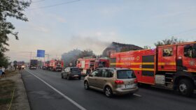 Echipele intervin cu șase autospeciale de lucru cu apă și spumă, pentru localizarea și lichidarea incendiului care se manifestă pe două focare.