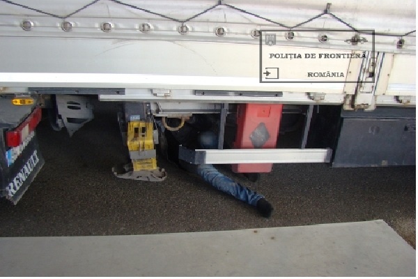 Poliţiştii de frontieră de la Punctul de Trecere a Frontierei Calafat au descoperit, joi după-amiază, ascuns pe osia remorcii unui camion, un cetăţean sirian de 25 de ani care încerca astfel să intre ilegal în ţară. El a fost returnat pe teritoriul Bulgariei.