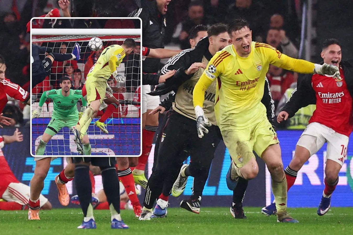 Scenariu de-a dreptul nebun la Lisabona, deşi deznodământul partidei dintre Benfica şi Real Madrid a avut efecte şi în altă parte. Eliminarea celor de la Ol. Marseille din play-off-ul Ligii Campionilor, paradoxal nu se datorează doar adversarului direct Bruges, ci portarului echipei Benfica, echipă care a învins cu 4-2 pe Real Madrid. Golul antologic al portarului ucrainian Anatoly Troubine în ultima secundă a partidei (min. 90+8) care a venit la o lovitură liberă a asigurat prezenţa Benficăi în play-off, golul pomenit, eliminând-o pe Marseille… la golaveraj. Echipa lui Jose Mourinho, Benfica Lisabona, a prins locul 24, care o duce în play-off. Clubul Bruges a venit pe locul 19 de pe locul 27.