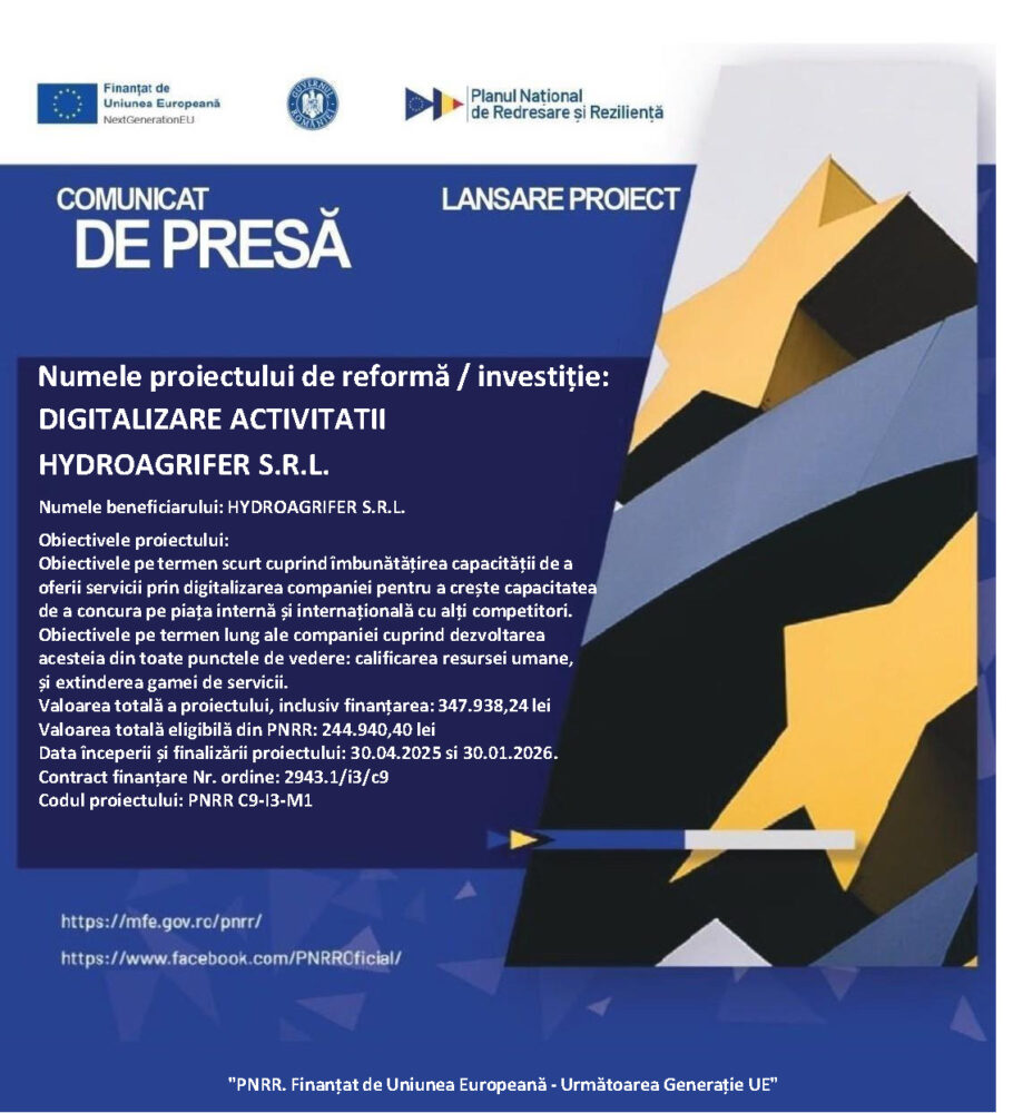 Comunicat de presă HYDROAGRIFER S.R.L.
