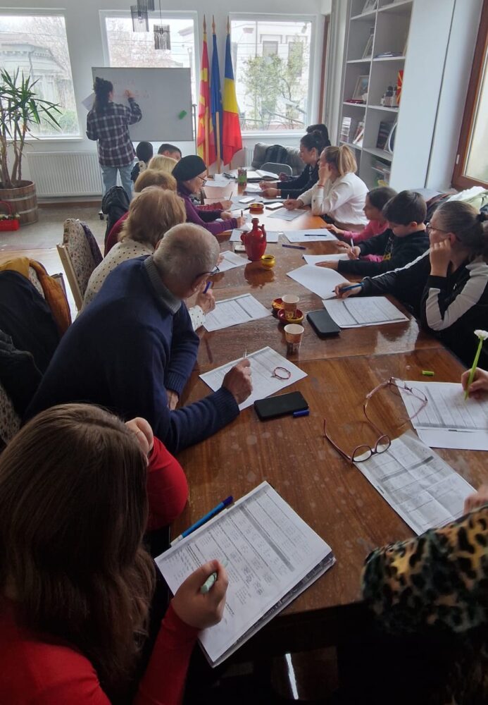 La Craiova, cursul de limbă macedoneană, coordonat săptămânal de doamna profesoară Elena Saul Nikolova, a continuat să aducă împreună participanți de toate vârstele, oferind un cadru propice atât învățării, cât și reconectării cu valorile identitare. În același timp, debutul cursului de dansuri macedonene, sub îndrumarea domnului Ionuț Florescu, dansator în cadrul Ansamblului Spnțe a adus un plus de energie și entuziasm, punând în valoare frumusețea tradițiilor prin mișcare și ritm.