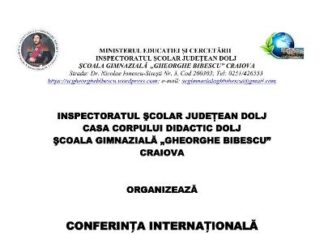 Inspectoratul Școlar Județean Dolj, Casa Corpului Didactic Dolj și Școala Gimnazială „Gheorghe Bibescu” Craiova organizează Conferința Internațională „ȘANSA LA EDUCAȚIE”, ediția a VIII-a, care...